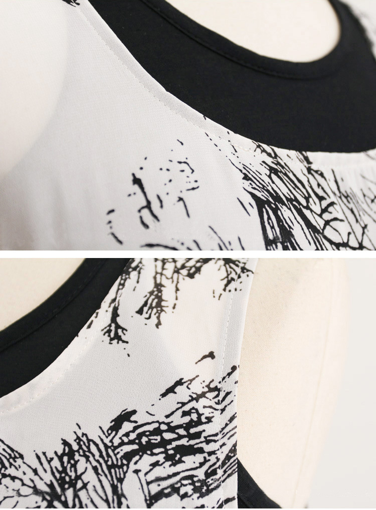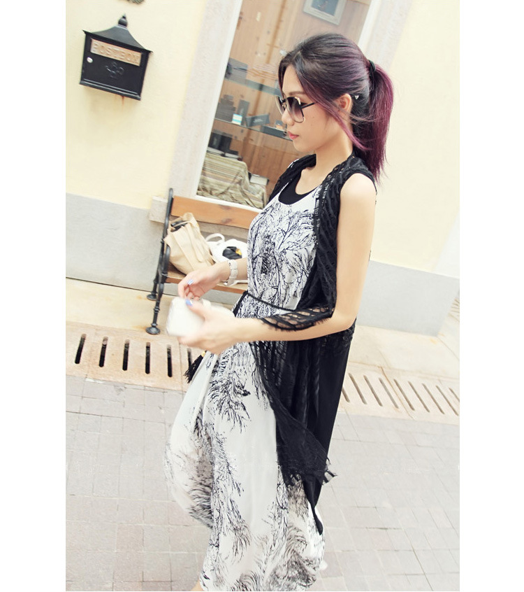 2015夏新款波西米亞復古水墨印花雪紡連衣裙兩件套背心長裙