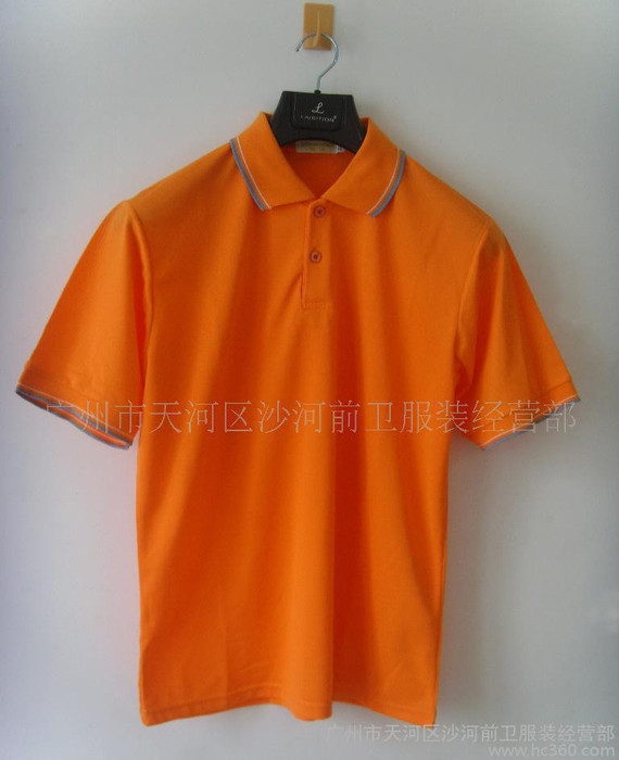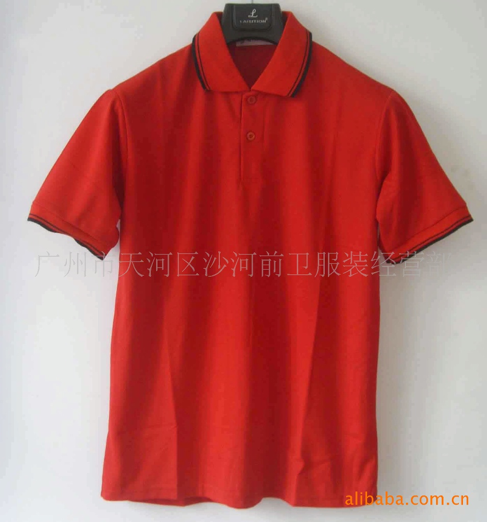 190克CVC網眼珠地反(翻)領有扣短袖袖領雙色廣告衫,顏色有:白、黑、橙、大紅、寶藍