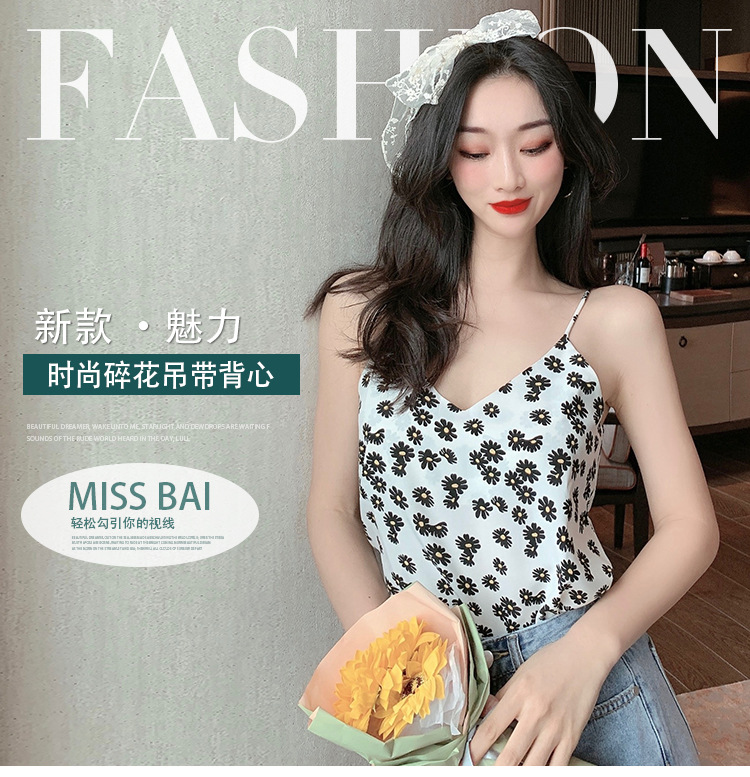 黑色小雛菊吊帶背心女內(nèi)搭打底外穿露背上衣潮2020夏季新款