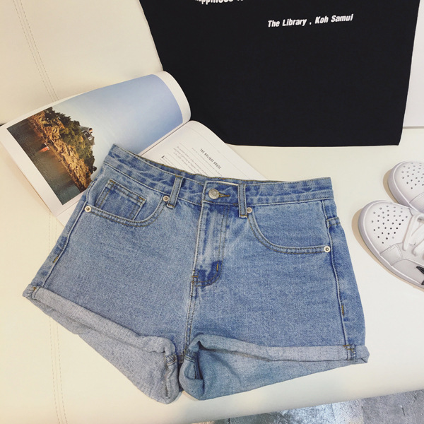 2021夏季超時尚韓版淺色系卷邊牛仔短褲 熱褲 韓國訂單