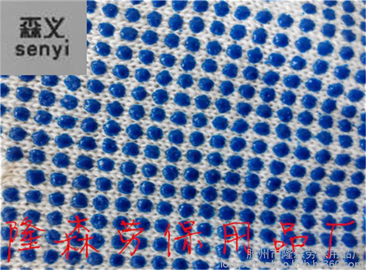 【品名】漂白點塑手套【規格】62克/付(雙) 744克/打(一小包)【包裝】12付/打(一小包) 600付/件(一大包)【用途】:適用于機械制造、造船、治金、林業、港口、礦山、建筑、消防裝卸等無油作業場所的手部安全保護?!咎攸c】:穿著輕便,透氣性能好、舒適,具有防滑 耐磨作用【注意】:1.本產品不具有耐高溫、絕緣性能。不得用于高溫作業場所**不允許作為絕緣手套使用。 2.使用本產品一旦受到割破,會影響防護效果 請勿使用. 3.本產品在儲存時應保持通風干燥,防止受潮、發霉。 4.使用時。禁止接觸腐蝕性物質