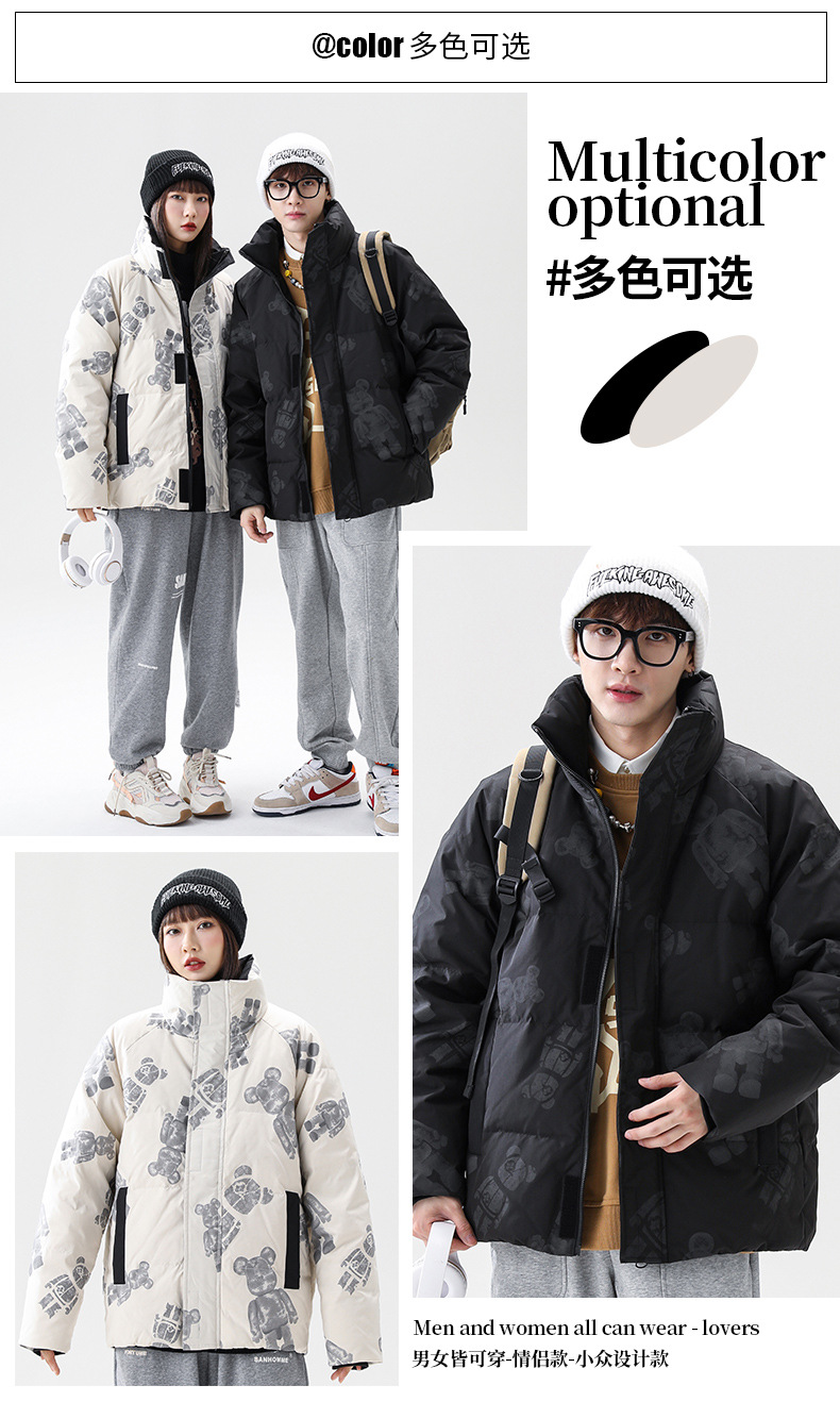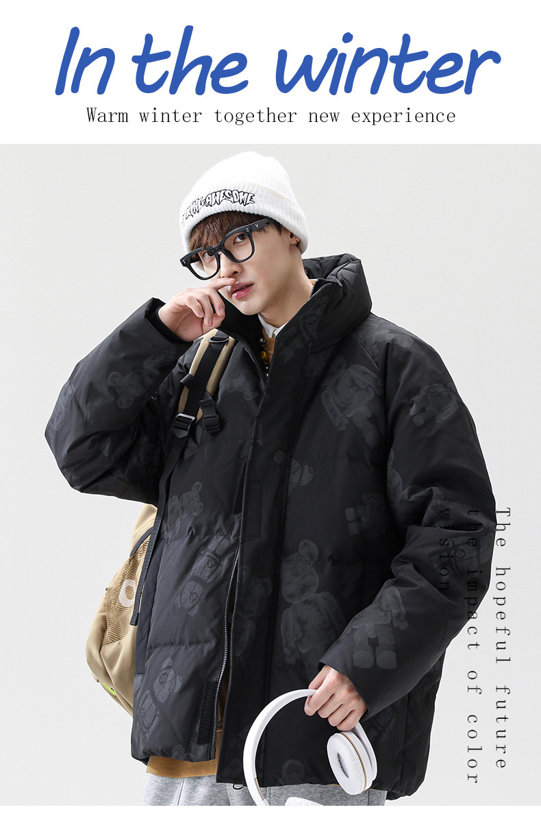都市男裝|2021冬季立領(lǐng)寬松保暖羽絨外套港風(fēng)潮牌ins小熊羽絨服男