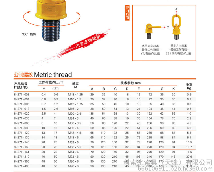 5、起重吊環均可360°全周旋轉,且具有180°支點繞軸旋轉功能。