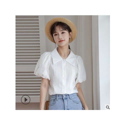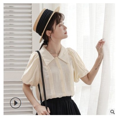 夏裝2021年新款甜美森系翻領白色襯衫女設計感小眾chic短袖襯衣