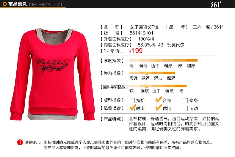 361度女裝T恤2014春季新款運動圓領長袖休閑運動服5