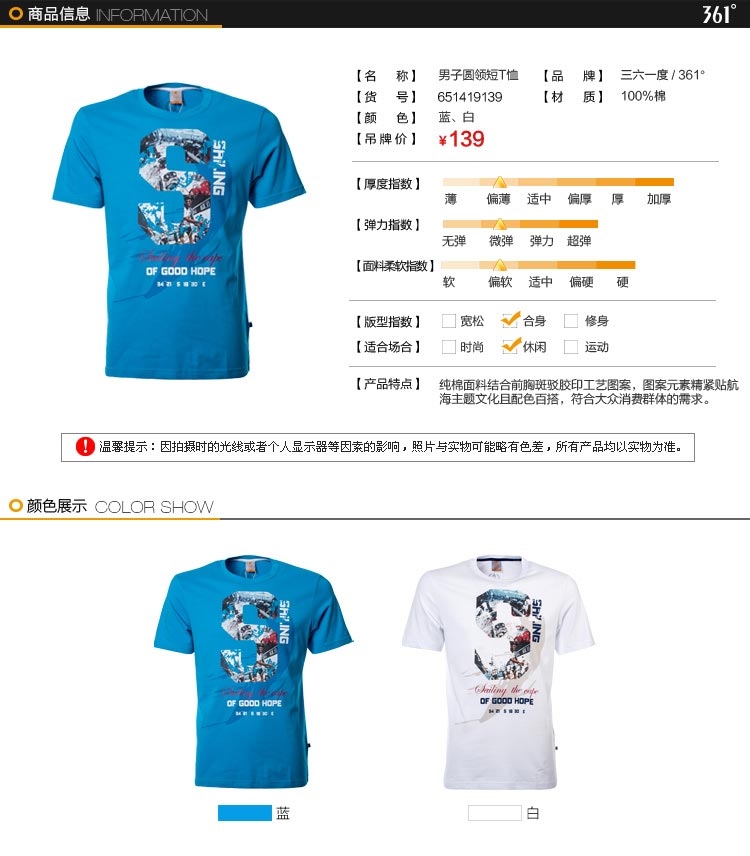 361度男裝運動短袖T恤純棉透氣361男休閑運動服上衣**651419139