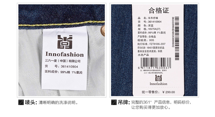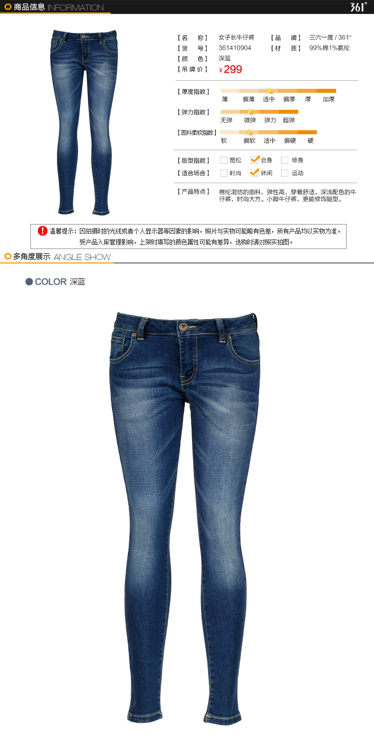 361度女褲2014春季新款女子時尚大方長牛仔褲休閑褲3