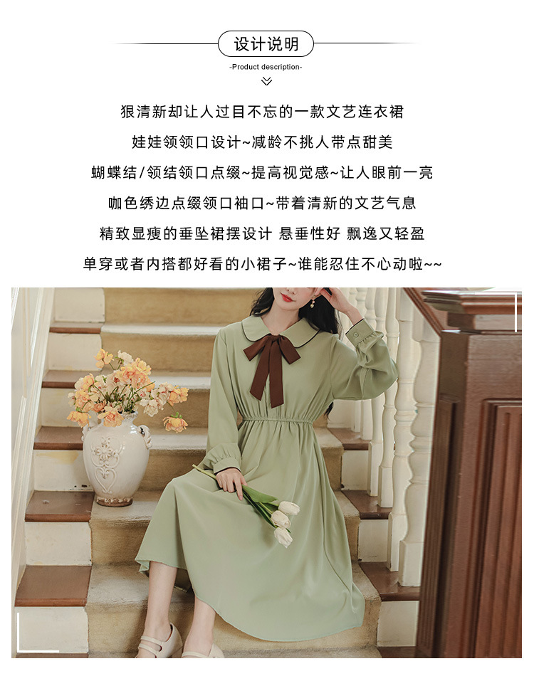 2021春季新品女裝純色小清新中長款顯瘦文藝長袖桔梗連衣裙3199#