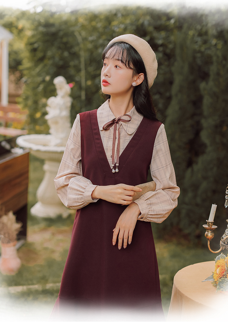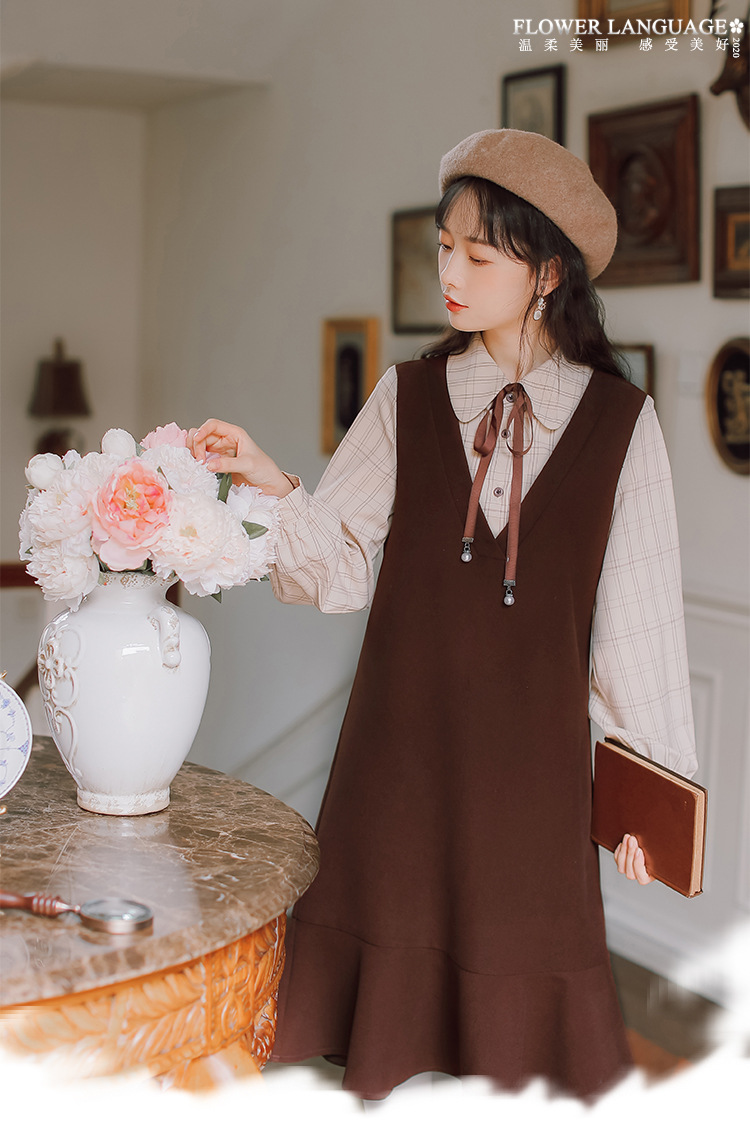 秋冬裝2020年新款女復(fù)古小眾減齡小香風(fēng)長袖拼接假兩件連衣裙9571