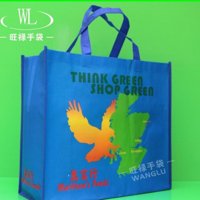 用這種方法加工的成品通常叫覆膜無紡布袋。此工藝分兩步,即先采用傳統的凹版印刷工藝將圖文印至薄膜上,再采用覆膜工藝將印有圖案的薄膜復合在無紡布上。一般大面積彩**案印刷的無紡布袋均采用這種工藝。其特點是印刷精美,全程采用機器生產,生產周期短。另外產品具有極好的防水性能,成品的耐用性也較其它工藝生產的無紡布袋好。薄膜有亮光和亞光兩種可供選擇,亞光具磨砂效果!該產品時尚大方,耐用,色澤飽滿,圖案逼真,缺點是價格比較昂貴。