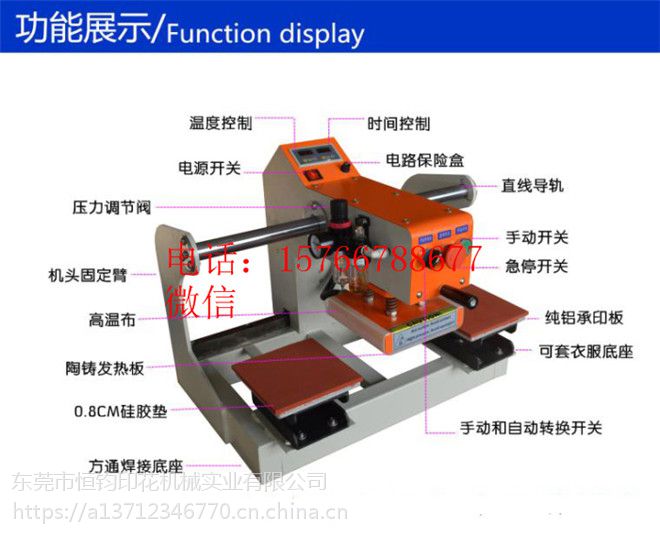 東莞市恒鈞印花機(jī)械實(shí)業(yè)有限公司為科技生產(chǎn)與服務(wù)型企業(yè)專業(yè)生產(chǎn)我們生產(chǎn)熱轉(zhuǎn)印燙畫機(jī),氣壓雙工位升華燙畫機(jī) 油壓雙工位升華燙畫機(jī) 升華熱轉(zhuǎn)印機(jī),匹布滾筒升華熱轉(zhuǎn)印機(jī),全自動(dòng)匹布升華燙畫機(jī) 液壓繡花溶膠機(jī) 繡花剝膠機(jī) 氣壓雙工位燙鉆機(jī) 油壓雙工位燙鉆機(jī) 全自動(dòng)四工位燙畫機(jī),氣動(dòng)搖頭雙工位燙畫機(jī),氣動(dòng)下滑式雙工位燙畫機(jī),氣動(dòng)抽拉式單工位燙畫機(jī),全自動(dòng)單工位燙畫機(jī),手動(dòng)搖頭燙畫機(jī),手動(dòng)開合式高壓平板機(jī),普通平板燙畫機(jī),多功能一體燙畫機(jī),烤帽機(jī),烤杯機(jī),烤盤機(jī)等等多款設(shè)備。粘合機(jī),粘合機(jī)工廠,粘合機(jī)廠家,連續(xù)式粘合機(jī),壓襯機(jī)廠家,過膠機(jī)廠,燙樸機(jī)廠,小型壓燙機(jī),貼合機(jī)廠貼心服務(wù)熱線我們生產(chǎn)的印畫設(shè)備廣泛用于紡織服裝制品,陶瓷制品,金屬制品的熱 轉(zhuǎn)印。產(chǎn)品適合于燙服裝/手袋/雨傘/鞋/帽/工藝品/廣告用品等.可將發(fā)泡燙畫/滲透燙畫/升華燙畫/幻彩燙畫/植絨燙畫/燙金燙畫/泳裝燙畫/電子科 技影像燙畫/燙鉆/燙珠/燙膠等高精度轉(zhuǎn)印到自己所需要燙印的特品上.