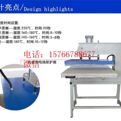 氣動雙工位燙畫機(jī)可將升華類、溶劑類油墨的彩**案與文字經(jīng)熱轉(zhuǎn)印在棉、麻、化纖、尼龍等織物及陶瓷、玻璃制品上,還可進(jìn)行植毛燙畫和發(fā)泡印花工藝等的熱處理,及服裝的低溫低壓襯與面料的粘合,如童裝、鞋帽等粘合之用,也可用于生產(chǎn)小批量的手帕。