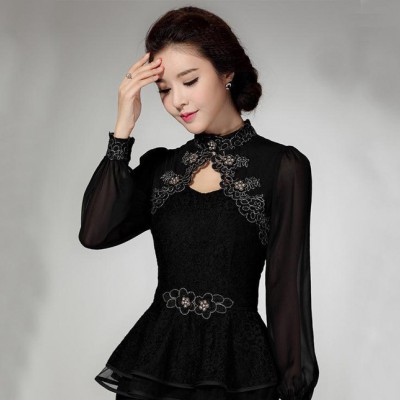 大碼女裝,荷葉邊雪紡上衣,新款秋裝,長袖蕾絲小衫,蕾絲小衫,2014