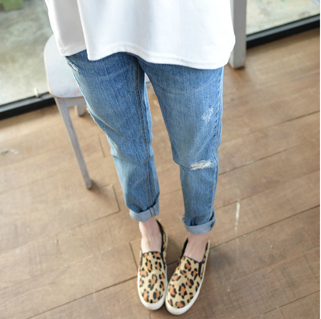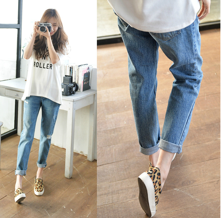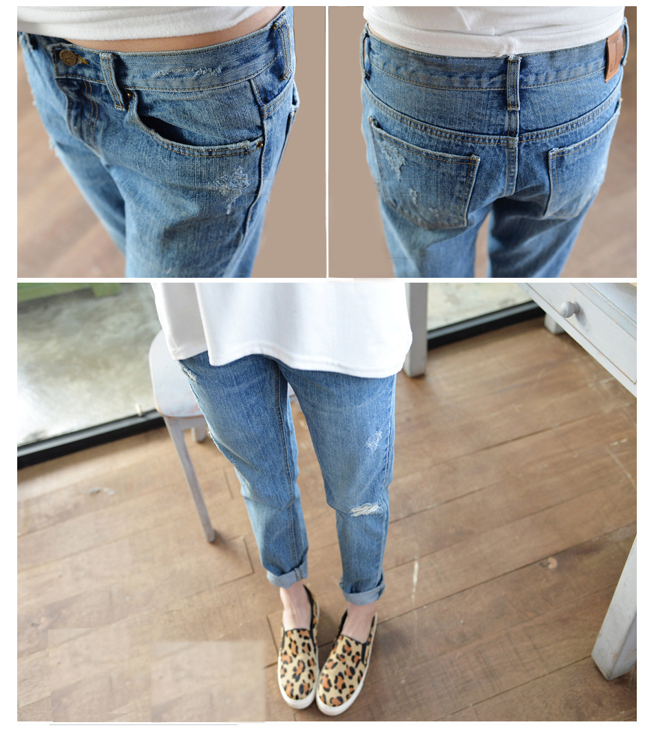 破洞牛仔褲,女牛仔褲,純棉牛仔褲,女小腳褲,寬松小腳褲,夏破洞牛