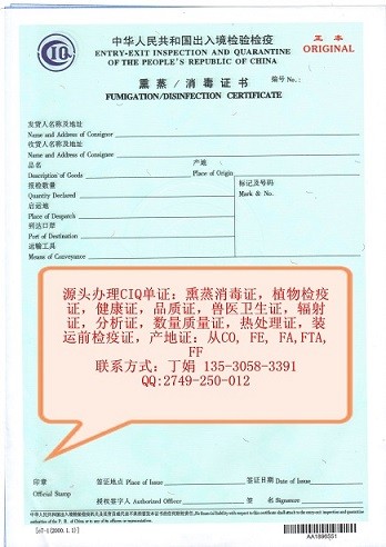 源頭提供CIQ清關證書**書,植物檢驗證書,衛生證書,獸醫證書,品質證書,質量證書,重量證書,裝運前檢驗證書,
