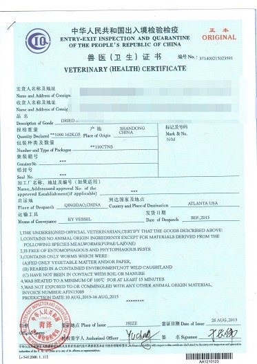 獸醫檢驗證書,是證明出口動物產品或食品經過檢疫合格的證件。適用于凍畜肉、凍禽、禽畜罐頭、凍兔、皮張、毛類、絨類、豬鬃、腸衣等出口商品。是對外交貨、銀行結匯和進口國通關輸入的重要證件
