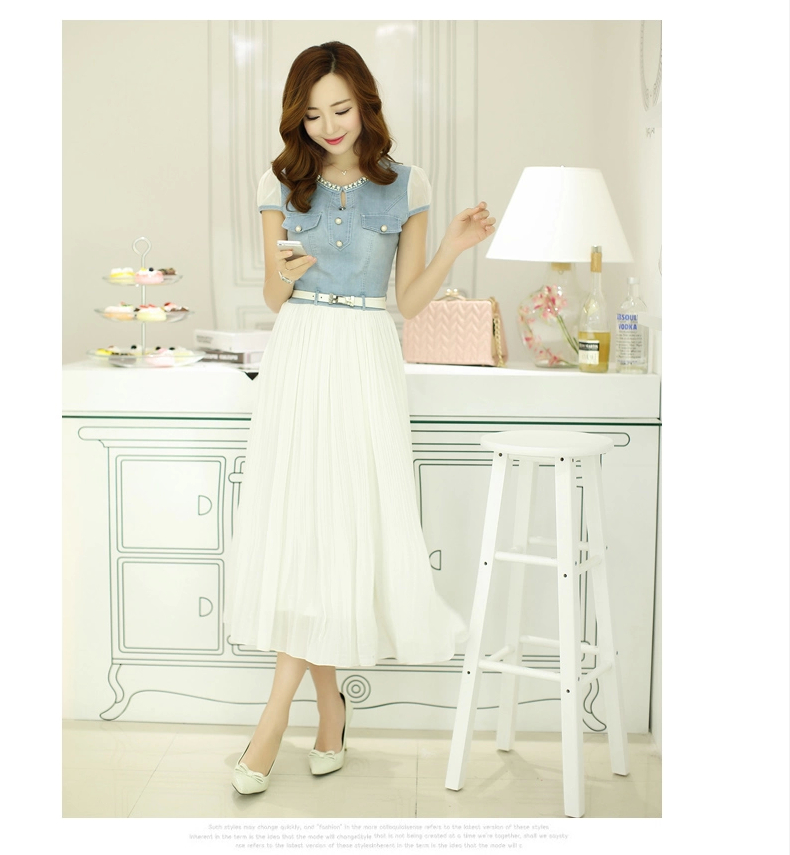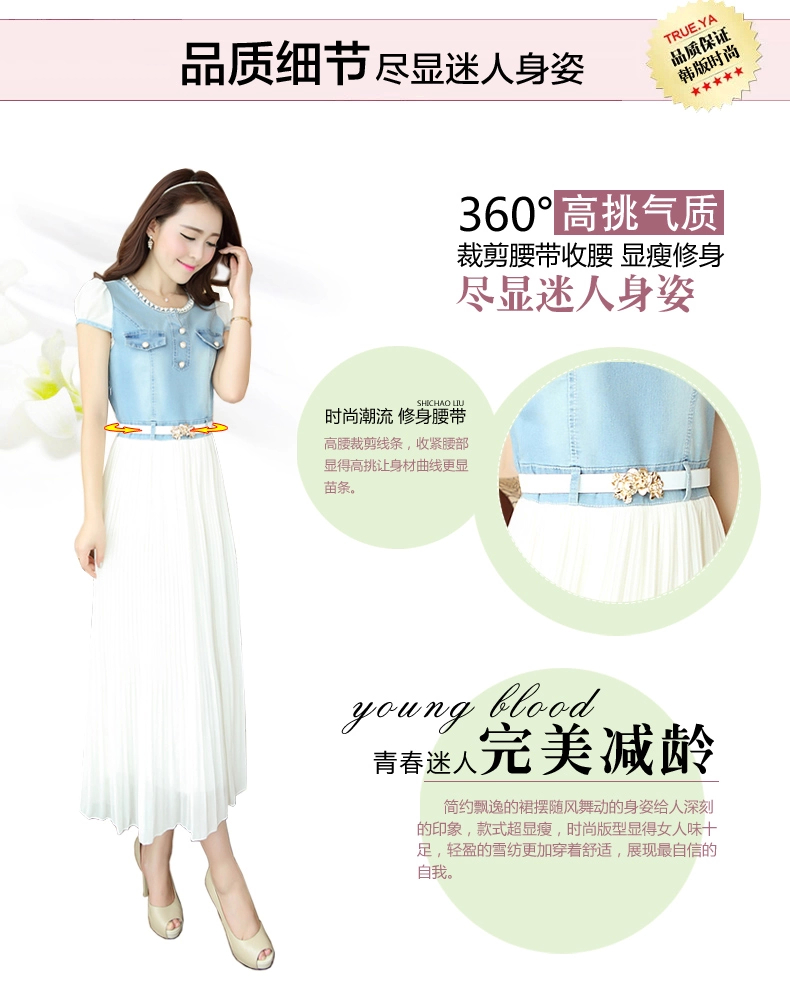 主圖來源:實拍有模特 | 顏色:牛仔+白色雪紡 |