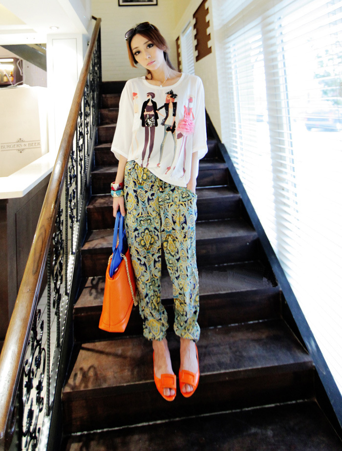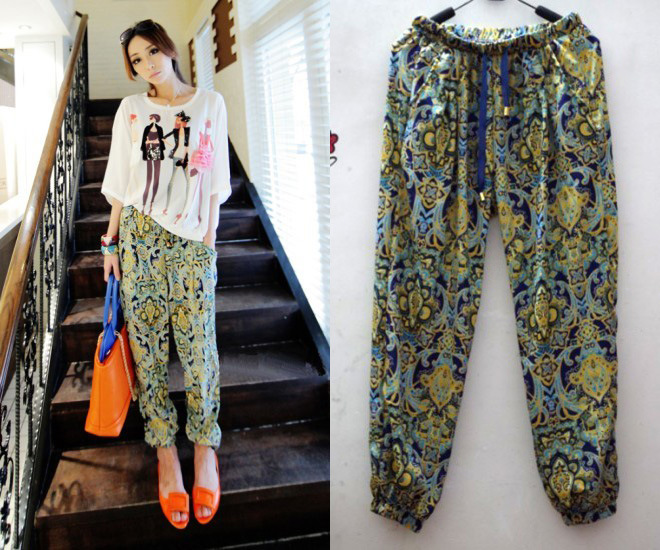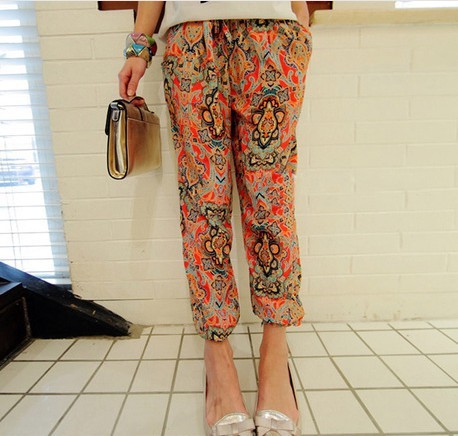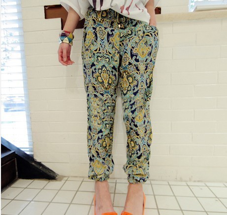 2014波西米亞民族闊腿褲涼爽扎腳雪紡花褲子
