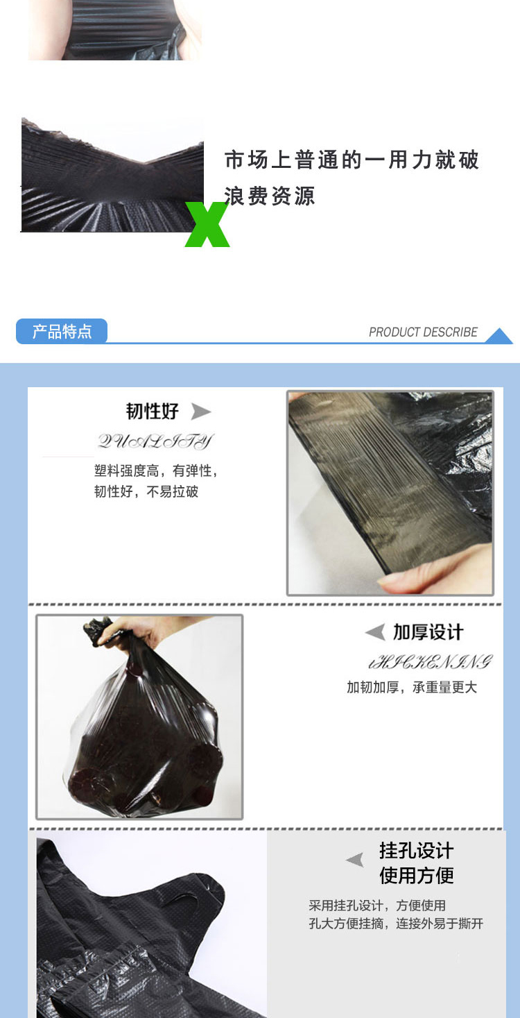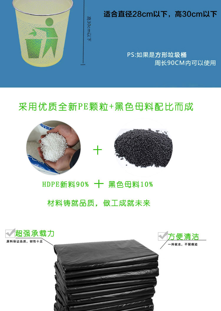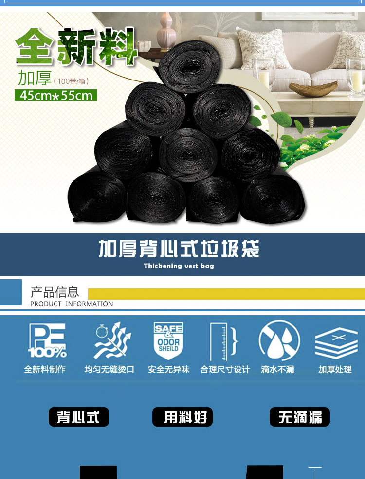 安之錦 定制黑色垃圾袋 點斷式垃圾袋 黑色背心袋新料加厚垃圾袋