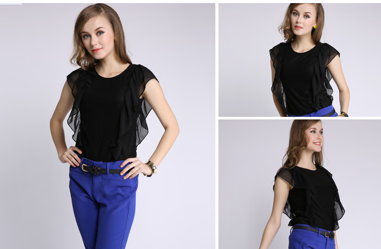 清倉 2013夏裝新款韓版荷葉邊雪紡衫圓領背心無袖修身百搭T恤女