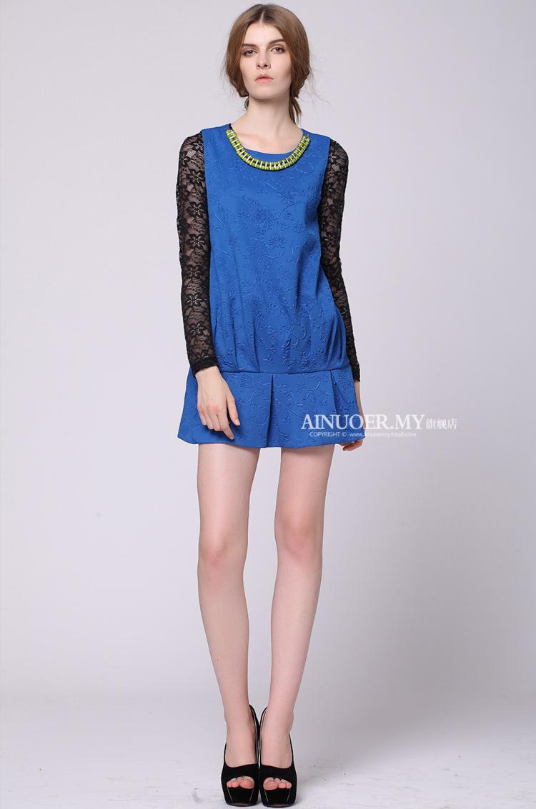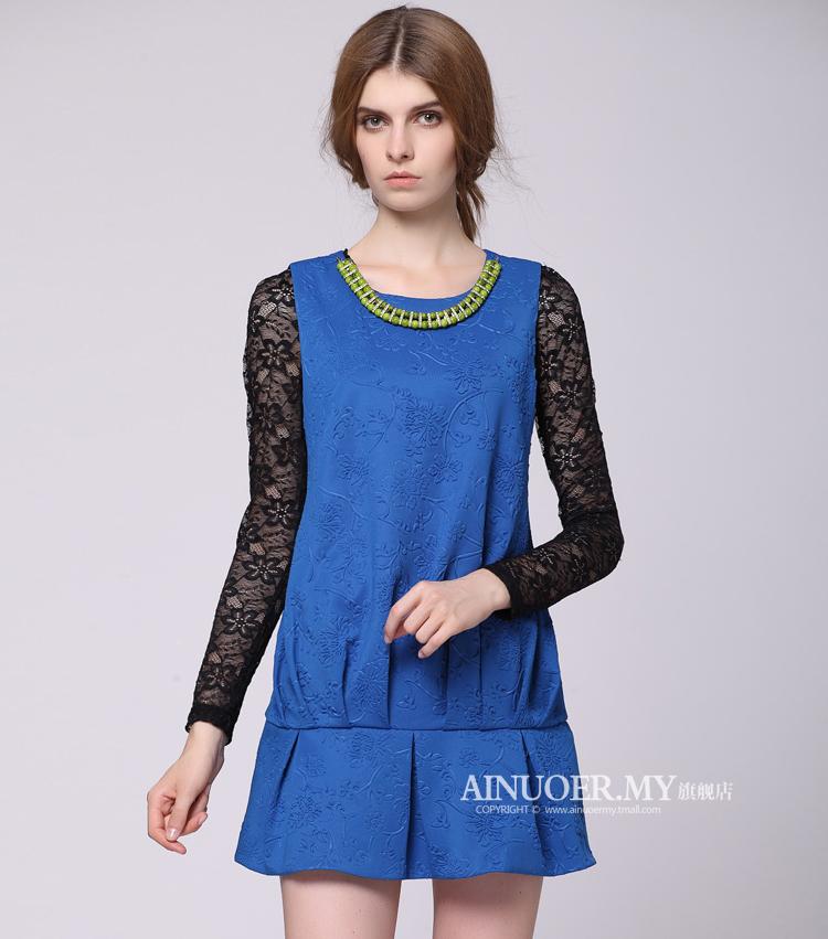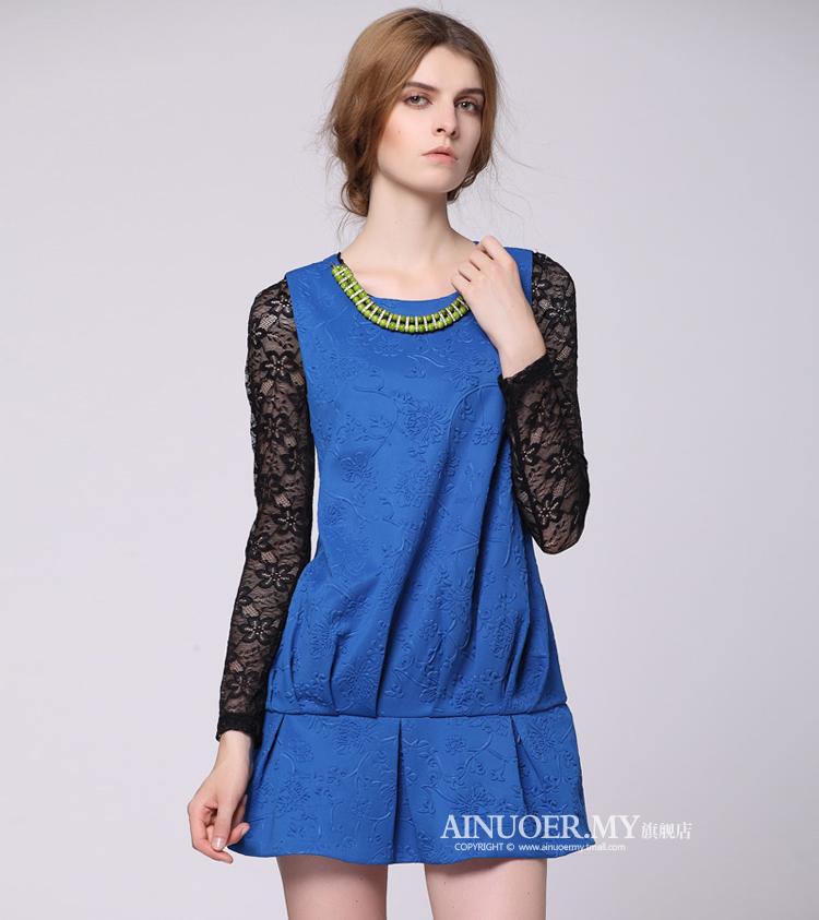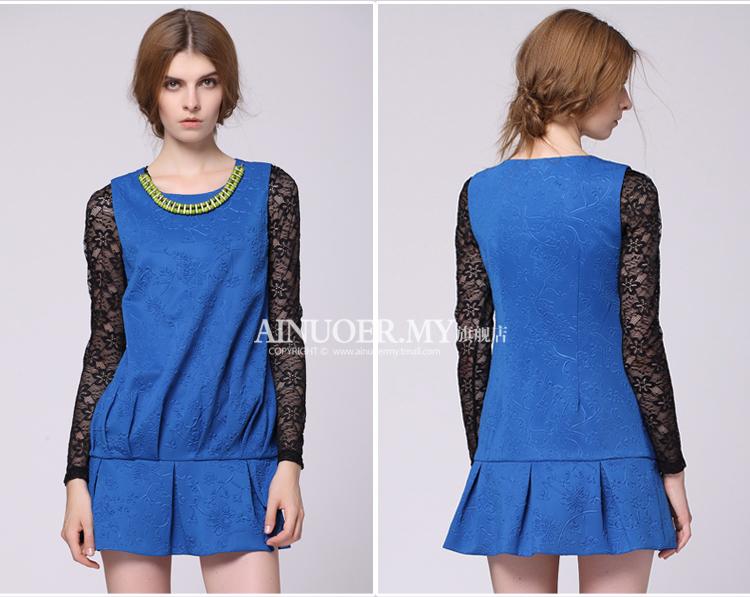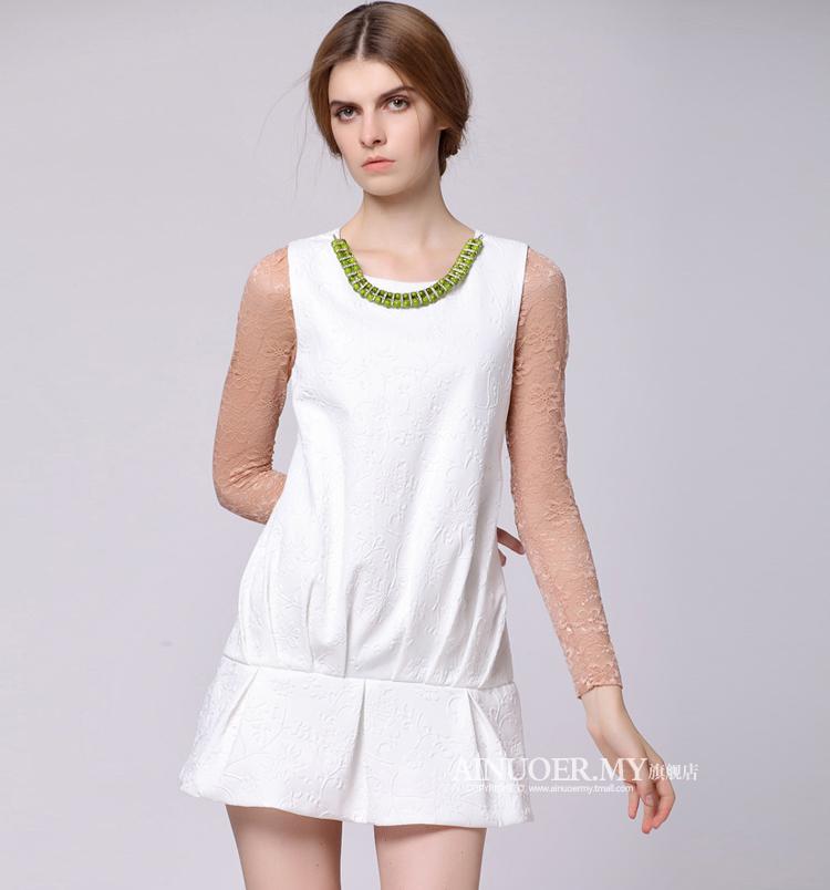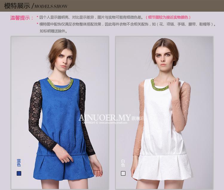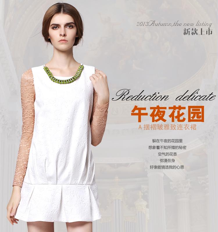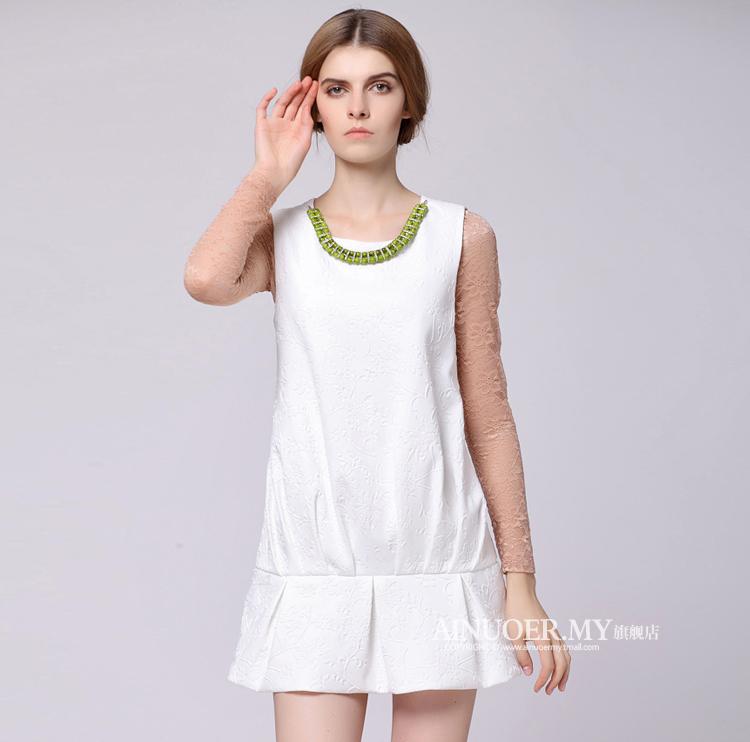 AINUOER.MY歐洲站2013秋新款背心裙 立體壓花紋A擺褶皺無袖連衣裙 上圖搭配裸粉色蕾絲衫點擊圖片即可查看 上圖搭配長袖蕾絲打底衫點擊圖片即可查看