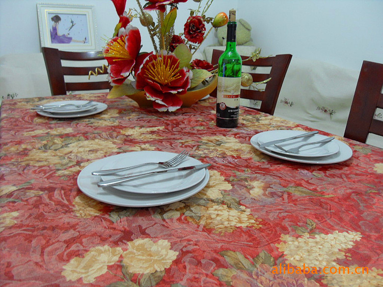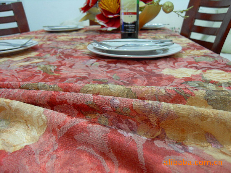 產(chǎn)品類別:餐廳用品 布藝軟裝 | 貨號:大紅喜慶提花桌布 |