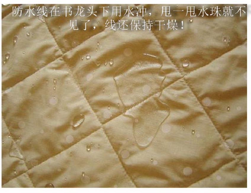 防水線工藝:縫紉線染整后加入潑水劑處理,烘烤而成。分邦迪防水線,滌綸高強(qiáng)防水線,SP防水線;