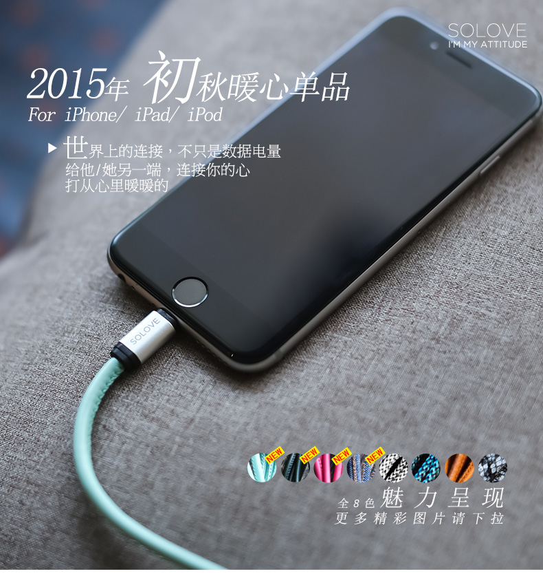 SOLOVE素樂 圍巾蘋果6Plus數據線iPhone5 i