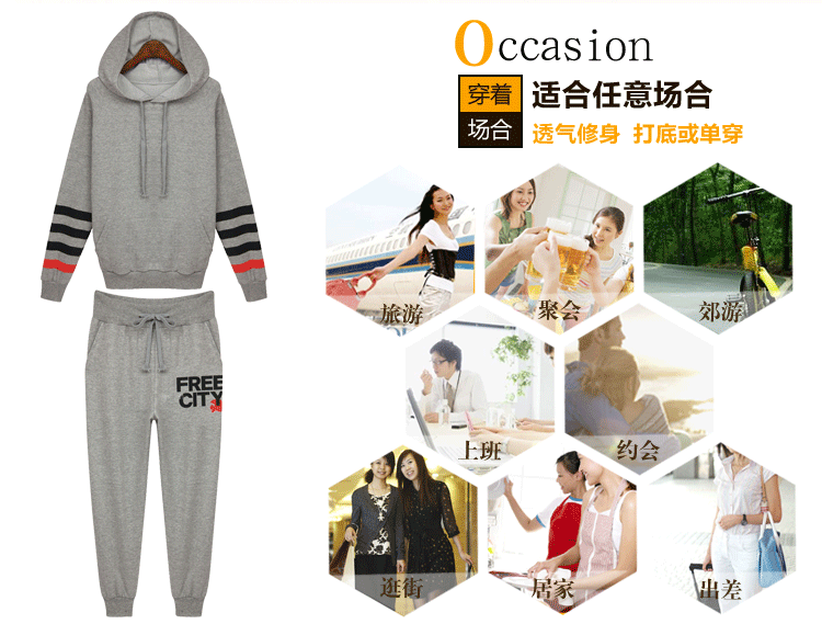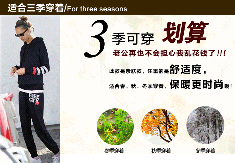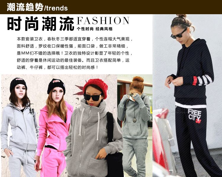 歐美時尚2014秋冬裝女裝寬松長袖連帽加厚加絨外套衛衣絨衫套裝