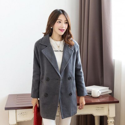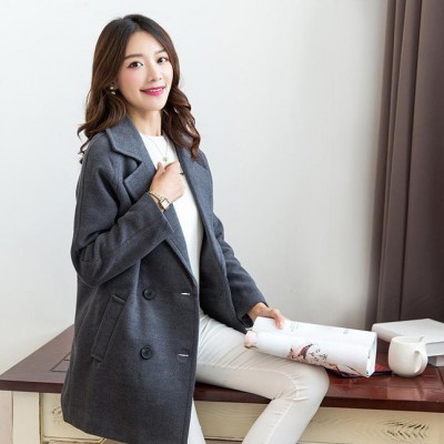 2015繭型毛呢外套秋冬加厚毛灰色西裝領大衣女萊蒂斯娜女裝