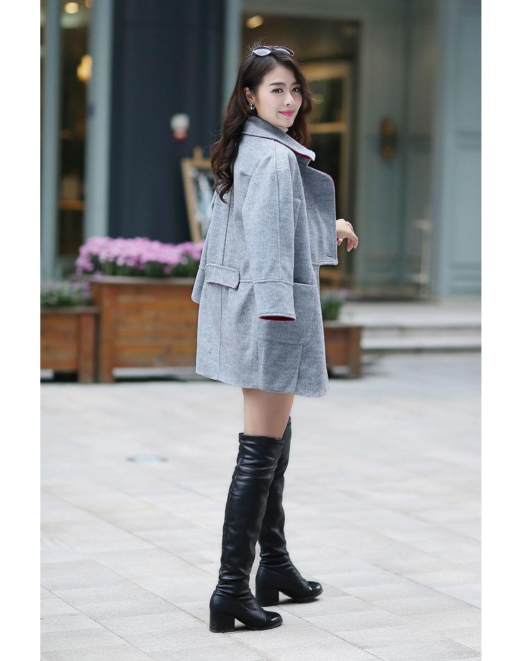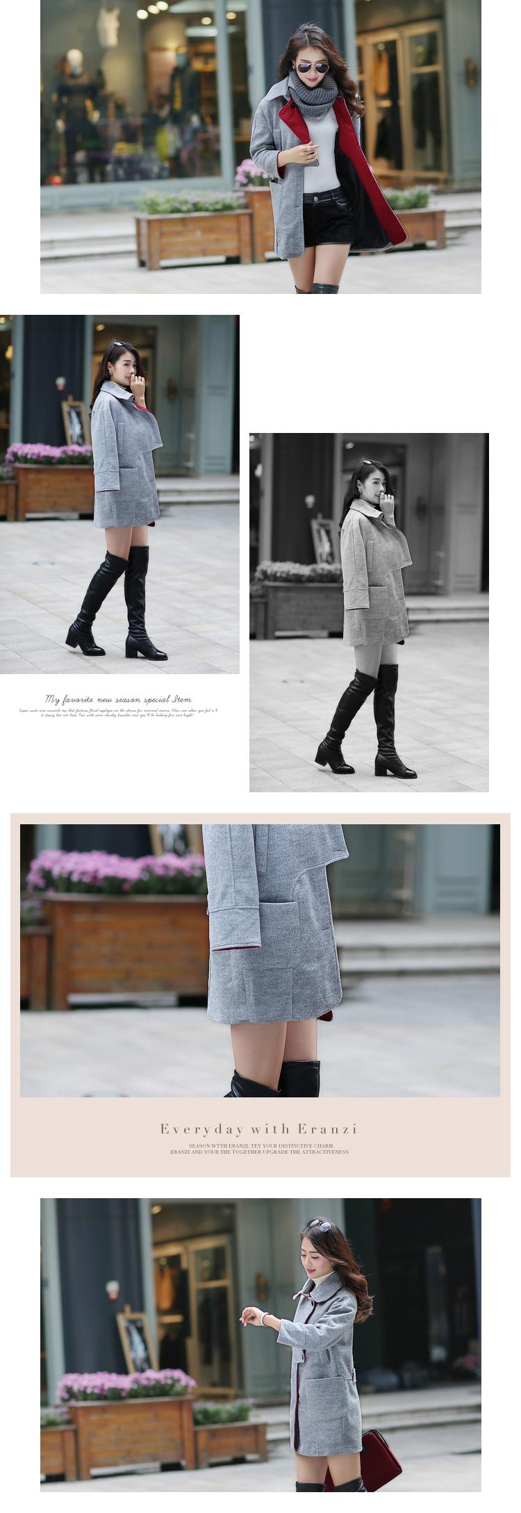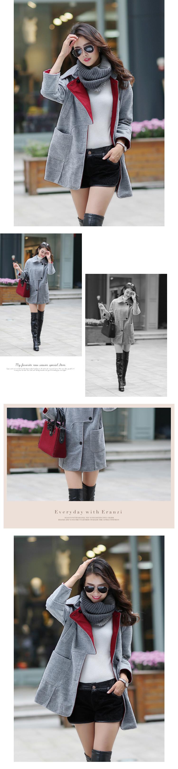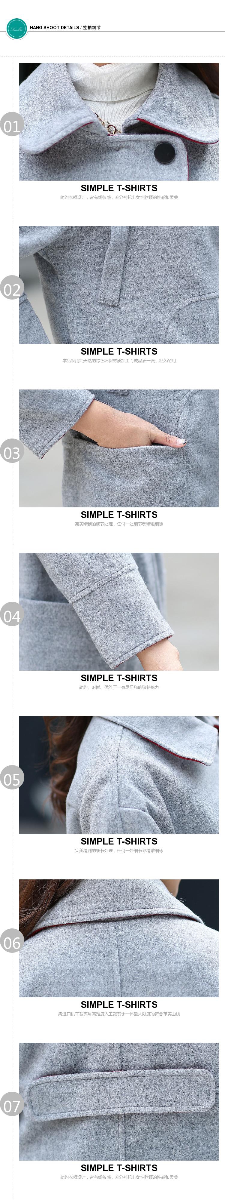 2015秋冬新款韓版女裝翻領搭扣中袖呢大衣風衣