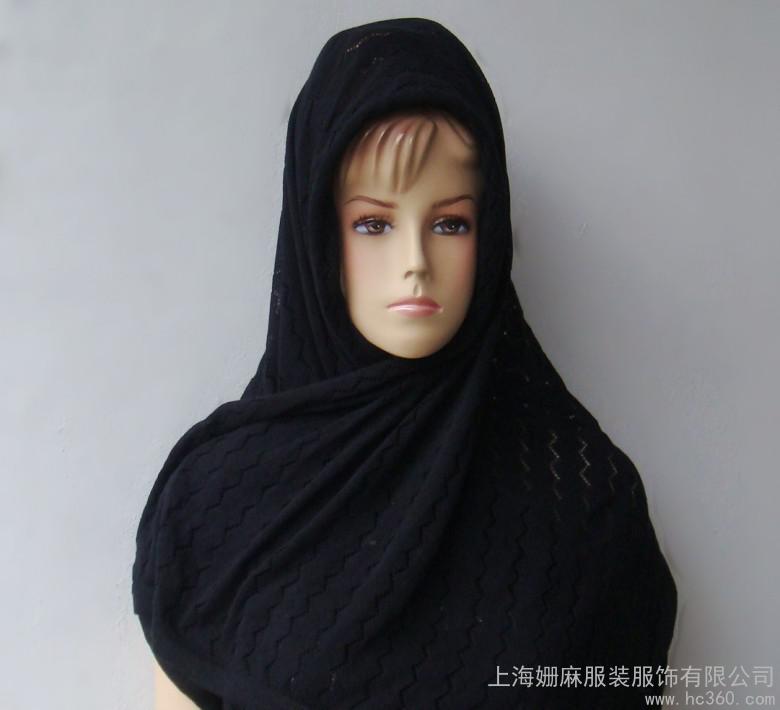 外貿出口余單—黑色婁空花披肩圍巾 材質:棉