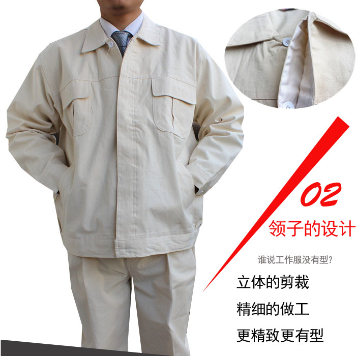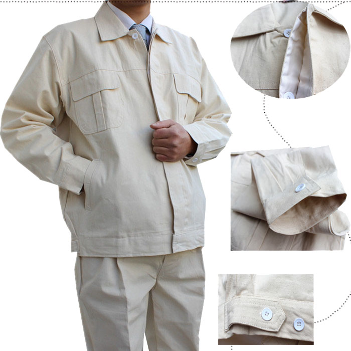 純棉米白色電焊服 工作服 帆布電焊共服 加厚防火工作服套裝帆