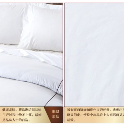 本公司供應江蘇康乃馨三星級酒店賓館會四件套,品牌康爾馨,型號貢緞壓條。參數為:規格* 1.8米,品種* 4件套,原料* **棉,產地 淮安,件數 4件。質量保證,歡迎咨詢洽談。