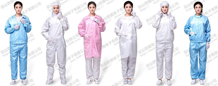 常見款式:防靜電大褂、防靜電分體服、防靜電連體服、防靜電圍裙、防靜電袖套等。