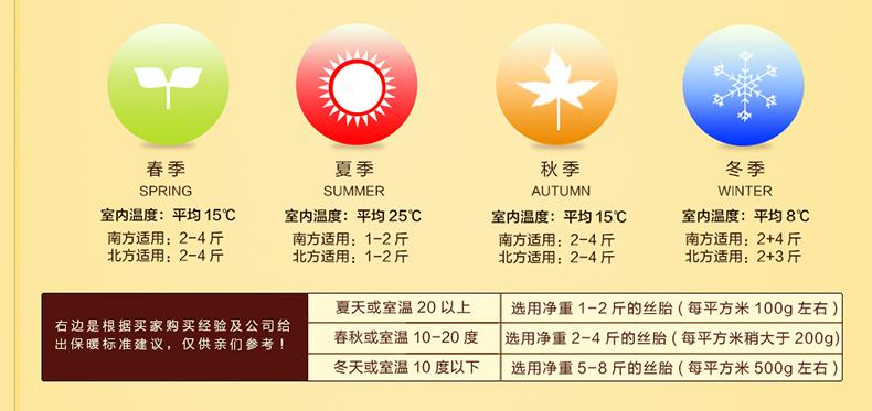 桑蠶絲凈重8斤:適合溫度-5℃以下。