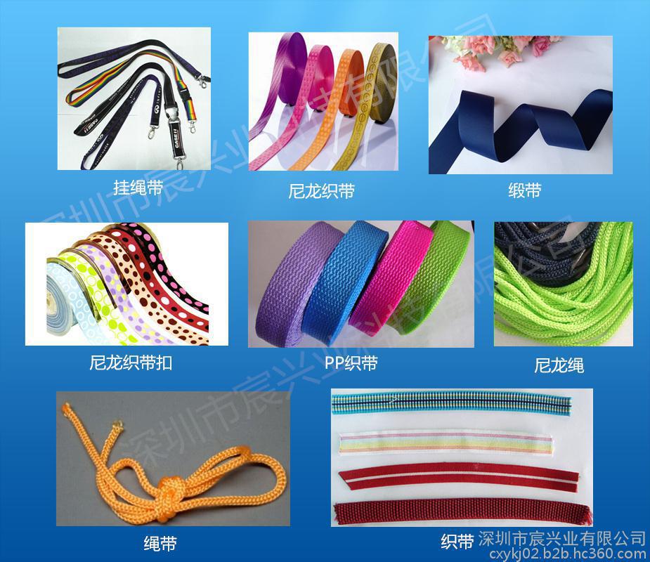 裁斷材質:各種魔術貼/粘扣帶、各種拉鏈、搭扣帶、松緊帶、雙面膠紙帶、箱包帶、圓繩、編織帶、尼龍褡扣(VELCRO)、衣服內襯、不需熱封口的織帶、絲帶彩帶、標簽紙、鞋帶等等.