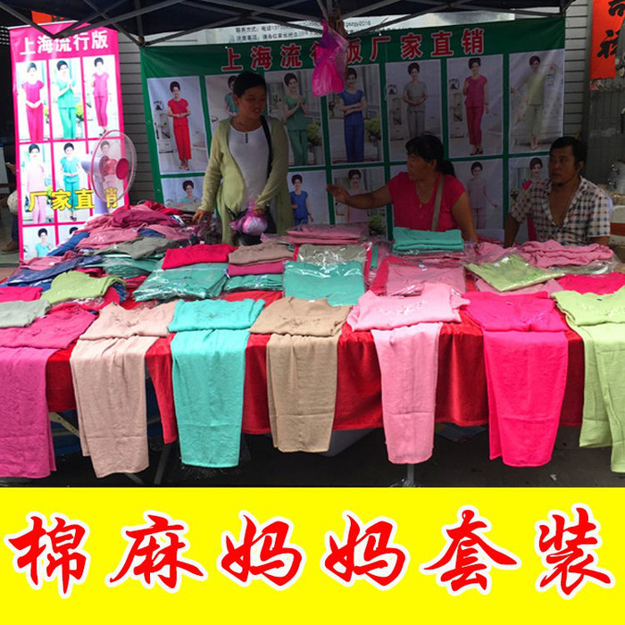 爆款**天絲棉麻媽媽裝 10個顏色 4個號碼 XL~XXL-XXXL -XXXXL 100斤-180斤的都可以穿,號碼顏色隨意挑選,35元一套銷售模式,下單送錄音,趕集展會隨便賣3千-5千元,500套以上有超大廣告布 ,全國試地 圓滿成功 火爆進行中...質量優異,適合地攤 步行街 展會跑量,不還價。