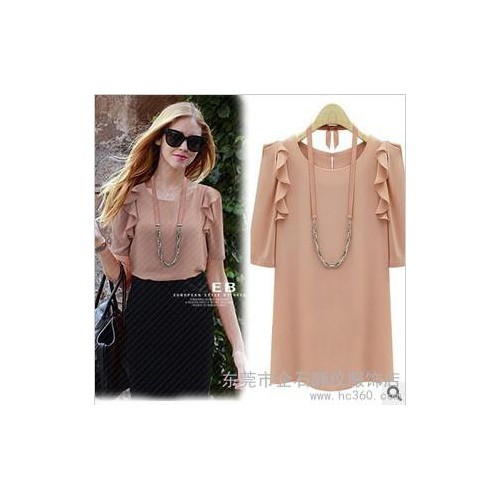 供應自設工廠 低價批發好質量歐美款飛飛袖雪紡時尚上衣襯衫AC3212