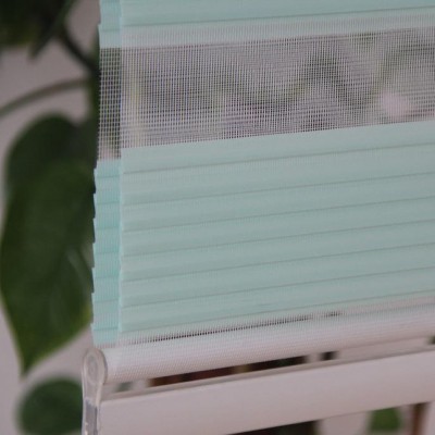 功能:它是通過特殊編制法在同一塊的滌綸織維面料之間加入一層紗百折而成,折成橫條柔簾來調(diào)節(jié)進光量的大小,為室內(nèi)提供和諧的采光效果,同時使強烈的太陽光變的柔和、舒服、視線條理化好。