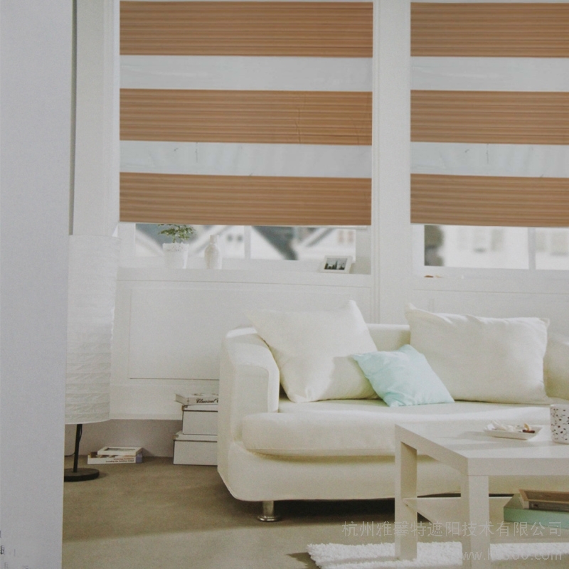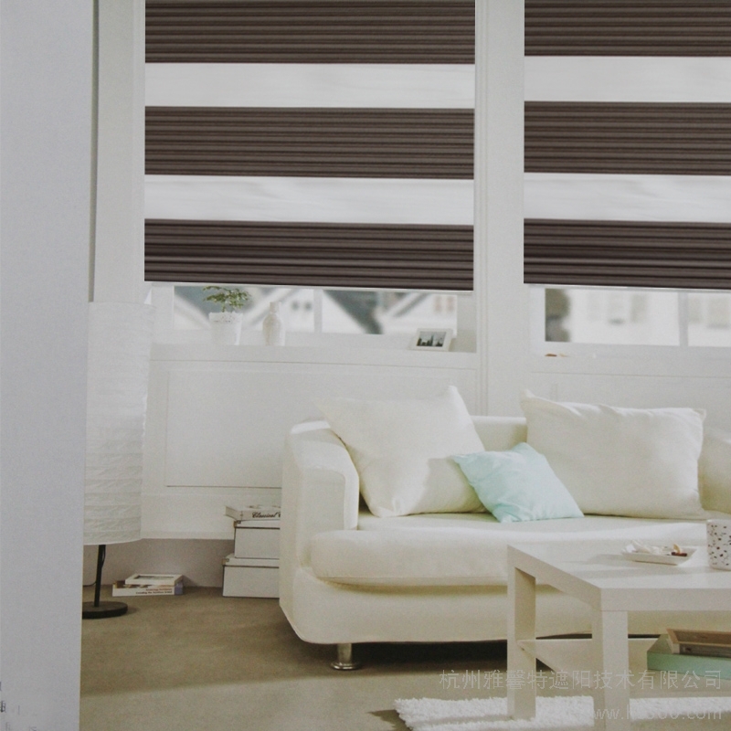 又名斑馬簾,調光簾,雙層卷簾,日夜簾,彩虹簾,柔麗絲等,起源于韓國,現已經在國內旺銷了,在國際上也非常流行,柔紗簾材質:聚酯滌綸/麻/尼龍,雙層面料 。采用雙層面料可調節(jié)光線,不占空間。它不僅集合了布和紗的優(yōu)點為一身,而且集百葉簾,卷簾,羅馬簾功能一體,歐式風格,雙層面料,可錯位調節(jié)局部光線,她立體感強,非常溫馨的柔紗簾,當簾片拉開時可望戶外景色而透入室內的光線柔和舒適,當簾片拉密時完全與戶外隔絕,確保隱私,盡顯柔紗簾的簡潔雅致。