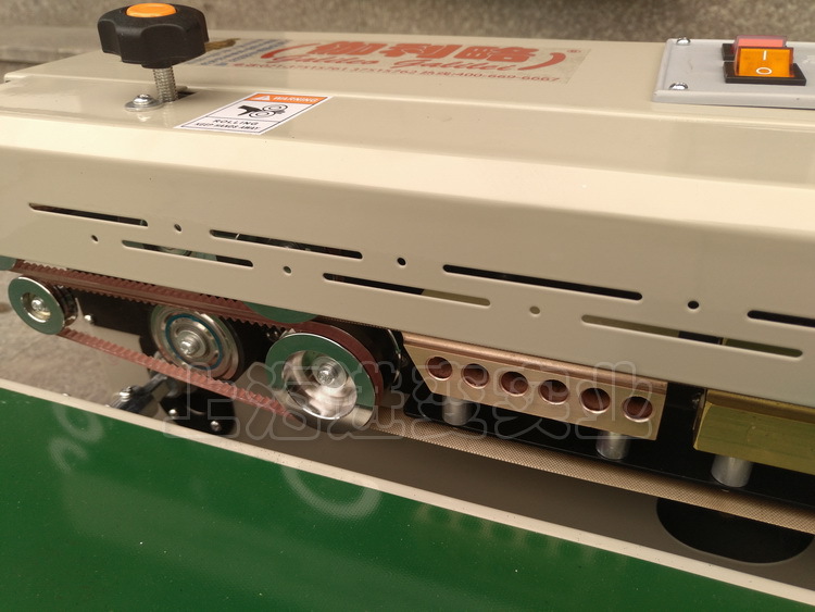 3、該款封口機(jī)是將塑料包裝袋連續(xù)不斷地由傳送→送進(jìn)→封口→冷卻→滾花或印字。具有連續(xù)封口效率高、封口質(zhì)量好、結(jié)構(gòu)合理、操作方便等特點(diǎn)。可與各種包裝流水線配合使用,其封口長(zhǎng)度不受限制,并適應(yīng)于各種不同材料的塑料薄膜袋。