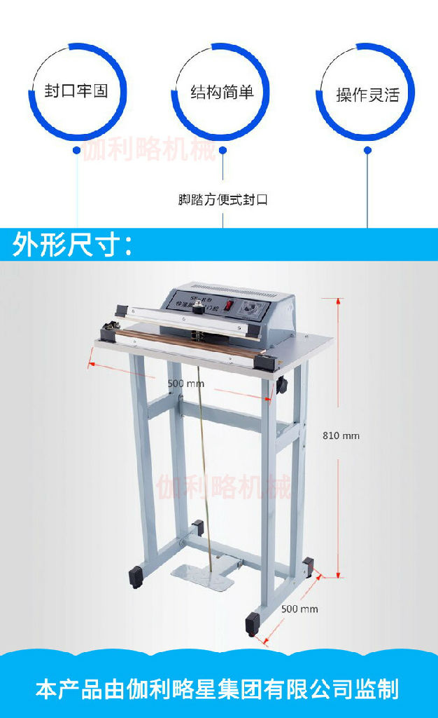 氣動(dòng)封口機(jī)是利用壓縮空氣作為動(dòng)力,電器脈沖技術(shù)封口。使封口材料平整、挺刮、效果好。封口形狀分為直線形、圓形、弧形、八字形、斜邊形、不規(guī)則形等等。廣泛用于鋁塑復(fù)合膜、紙塑復(fù)合膜、PVC、PP、PE等熱塑性塑料的制袋封口。氣動(dòng)封口機(jī)是一種新穎的氣電一體化包裝機(jī)械,是柔軟物質(zhì)、儲(chǔ)存、產(chǎn)品防潮運(yùn)輸領(lǐng)域中不可缺少的必要手段。該機(jī)采用壓縮空氣作動(dòng)力,封口壓力可調(diào),質(zhì)量穩(wěn)定可靠,可以手動(dòng)或腳踏開關(guān)操作,輕便簡(jiǎn)易。在化工,糧食,食品,飼料等行業(yè)得到廣泛應(yīng)用。