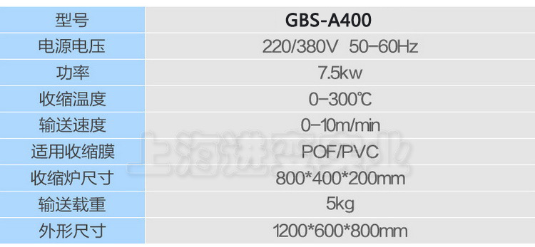 6根據薄膜的材質和厚度,設定封切時間,一般為1.5秒左右;當封切時間結束后,壓框將自動彈起,封切輸送帶將物品往收縮爐內運送,當封切后的物品剛好全部進入收縮輸送線內時,封切輸送線剛好停止,此為輸送時間。