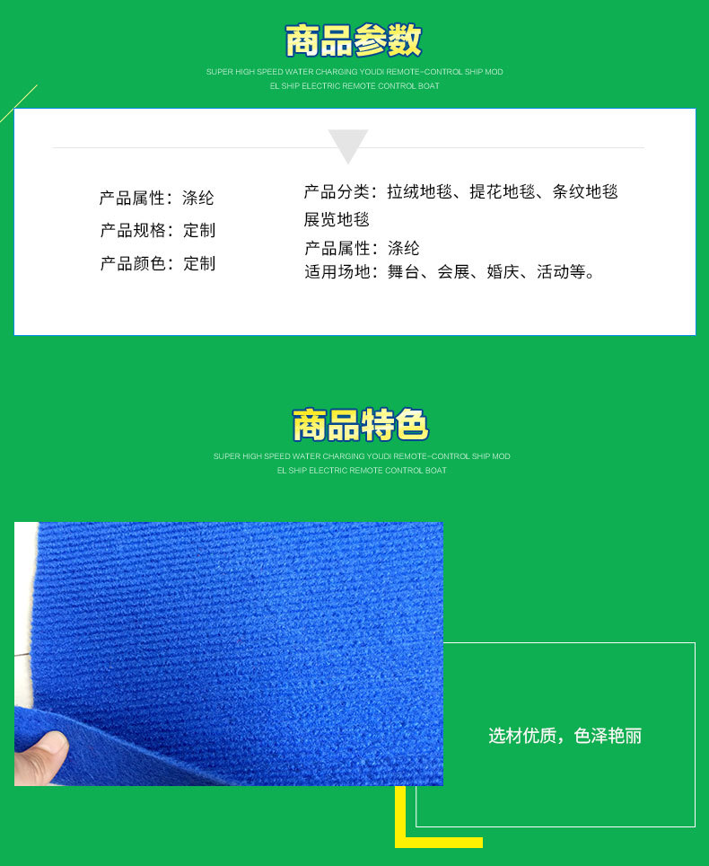 2mm厚平面展會地毯:婚慶、展覽會、展覽館、慶典活動、開幕式。開業典禮、晚會策劃、服裝發布會新聞酒會、企業年會、工廠慶典、品牌路演新品發布、奠基儀式、開幕慶典、開工慶典、會議布置、文藝晚會、慶典活動、簽約儀式、房產奠基、會場布置、各種會議新聞發布、簽約入位、剪彩開幕、展覽展示、晚會派對、竟技比賽、時裝表演、文藝匯演、展覽服務、會議會務、學術交流、節日慶典、廣文化、廣告宣傳、促銷推廣、客戶答謝會等。