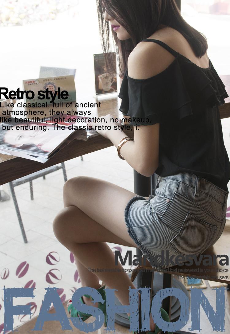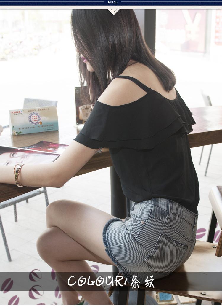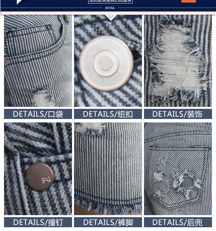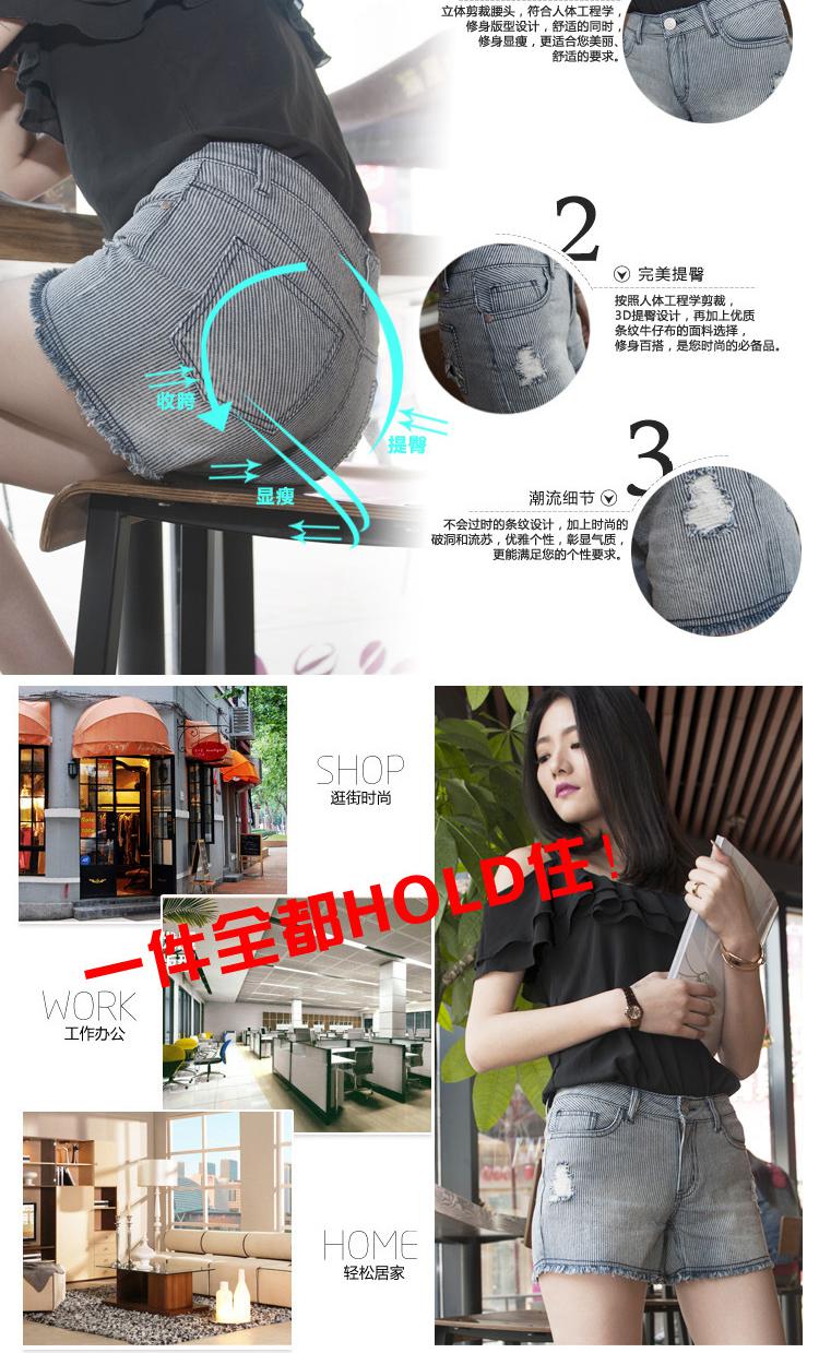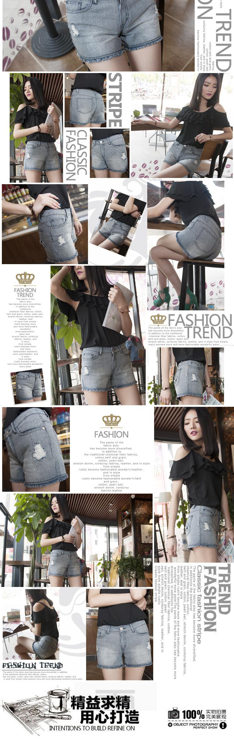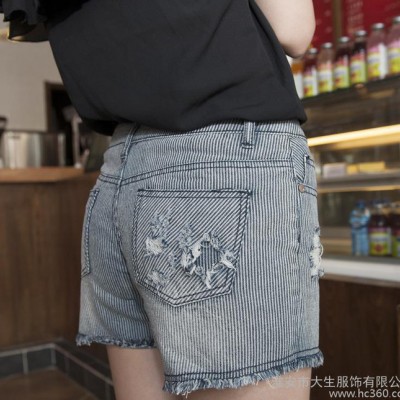 2015新款春夏牛仔短褲女 時尚撞色潮流顯瘦條紋短牛仔褲女