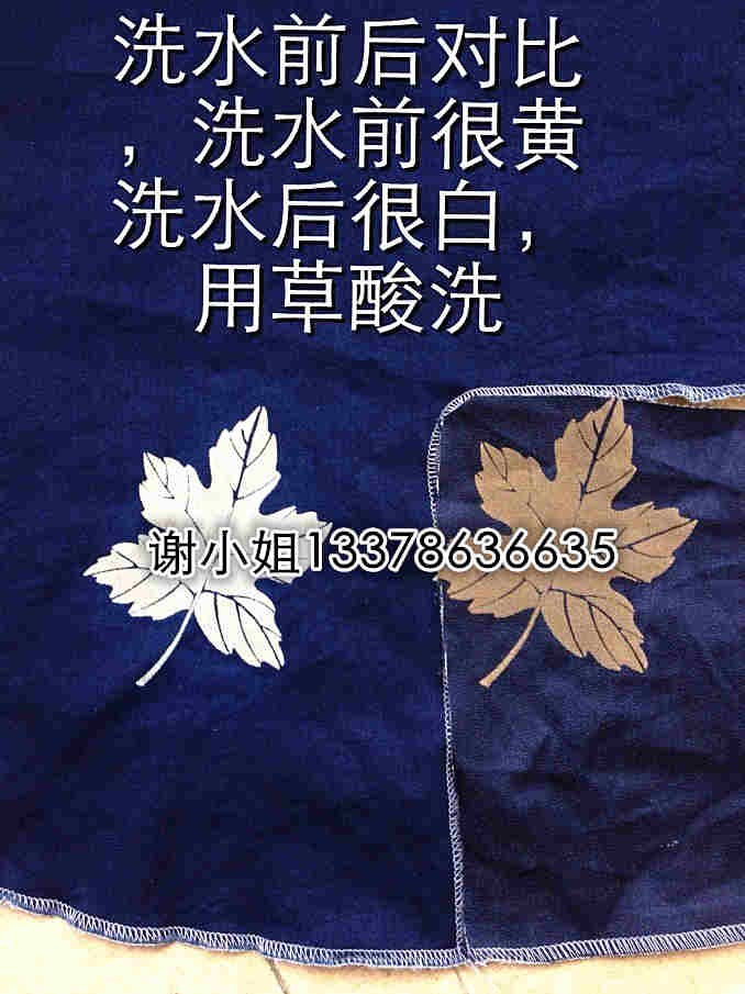 (2)拔白效果良好,能使靛藍完全消色,對硫化染料也有拔白作用。