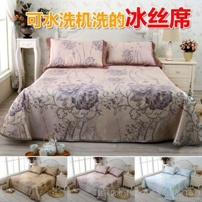 ** **豪華天絲冰絲席子可水洗 超柔加厚透氣床單式涼席三件套 【冰涼夏日】201
