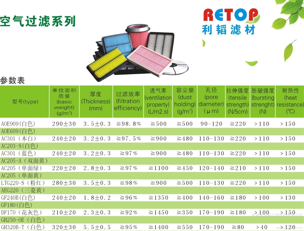 適用范圍:汽車發動機過濾器,空調濾清器、燃油濾清器、工業液壓濾清器及其他