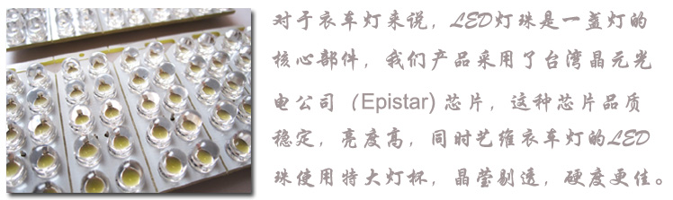 公司**采用臺灣高亮度發光LED生產的發光二極體衣車燈具組特點: